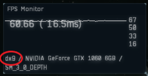 Если у вас очень старая видеокарта, вы можете проверить версию DirectX, нажав CTRL+F в игре, чтобы открыть окно с информацией о кадровой частоте. Вы увидите текущий режим рендеринга в левом нижнем углу.